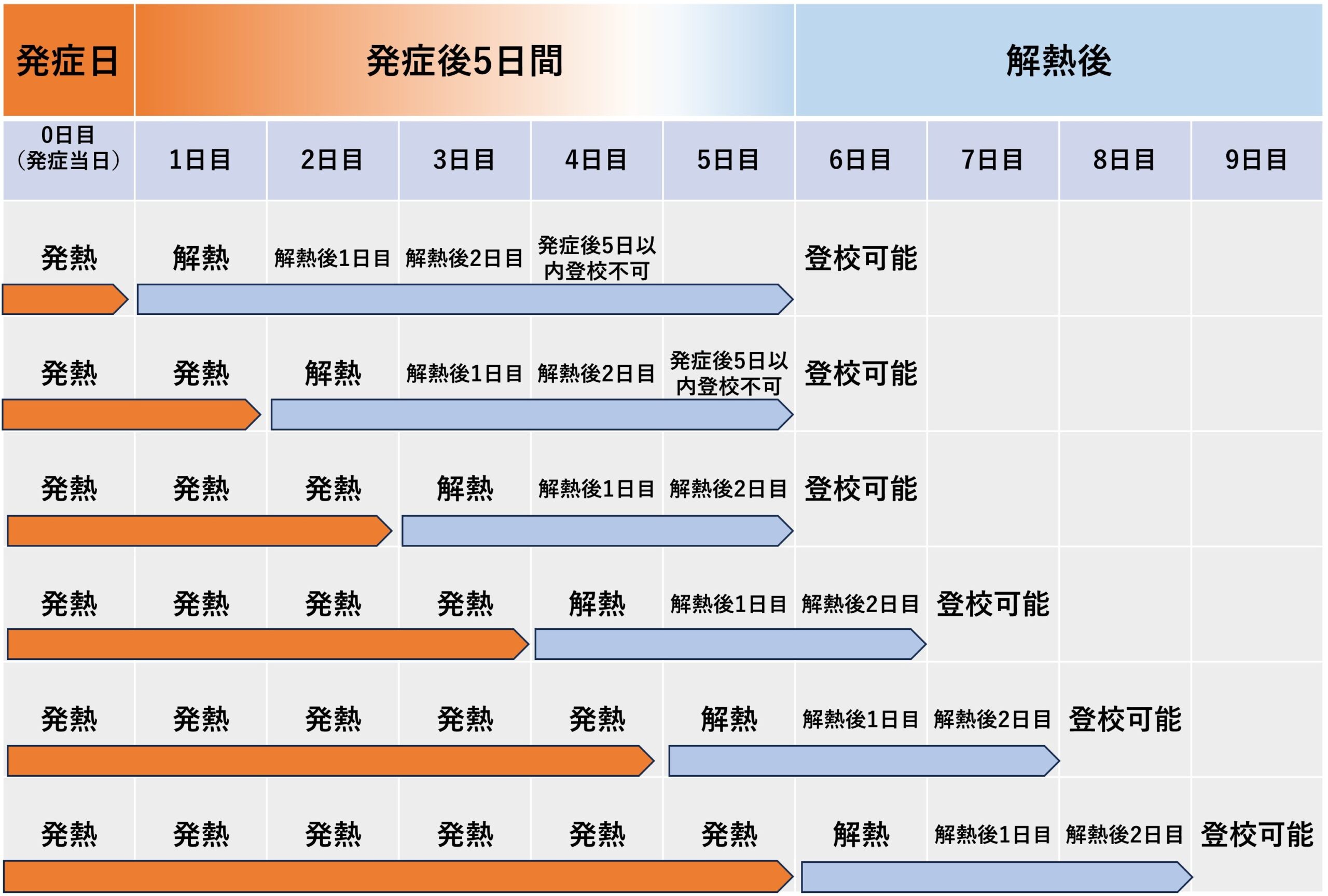 ※発症当日および解熱当日を0日目として計算する。